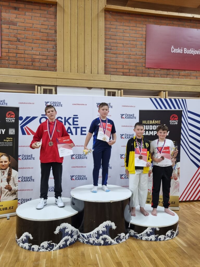 2.kolo Národního poháru v karate ČSKe – České Budějovice Kvě 26, 2025 | Aktuality, Fotogalerie, Soutěže 24.05.2025 – 25.05.2025 2.kolo Národního poháru v karate ČSKe – České Budějovice V kategorii U12 (+45kg) Štěpán Motyčka vybojoval stříbrnou medaili a v kategorii U14 (-40kg) Samuel Pospěch vybojoval bronzovou medaili Moc gratulujeme a jsme pyšní