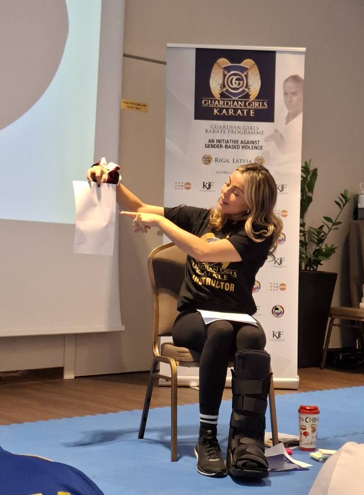 Program semináře obohatily dvě odborné prezentace. Dr. Diana Lapsa, psychoterapeutka, a Dr. Liene Niemane, trestní právnička, které vedly diskuze s otevřenými otázkami a odpověďmi o psychologických a právních aspektech sebeobrany a prevence genderově podmíněného násilí.
